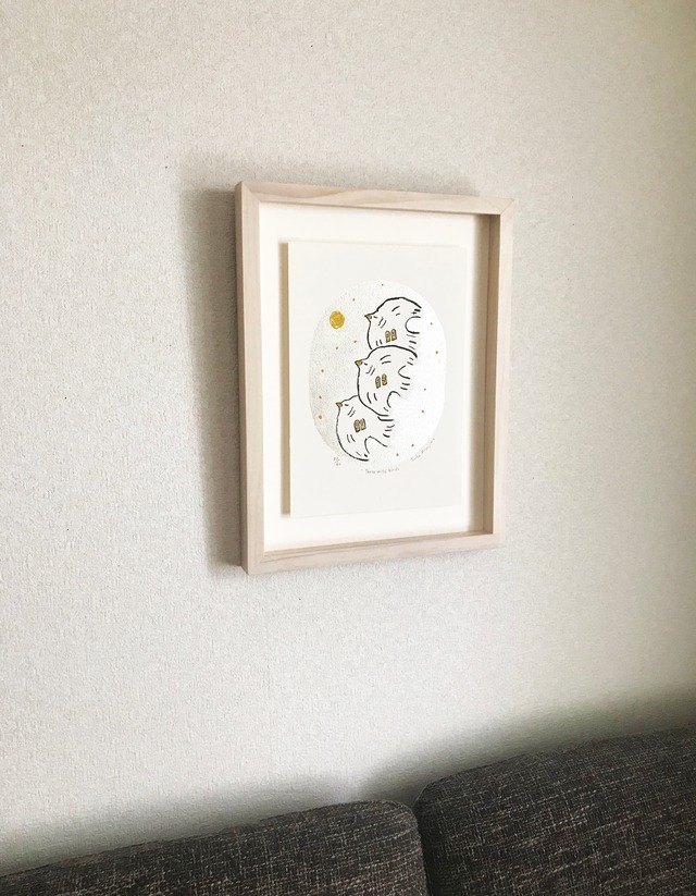 版画「Three wise birds」リトグラフ/額付