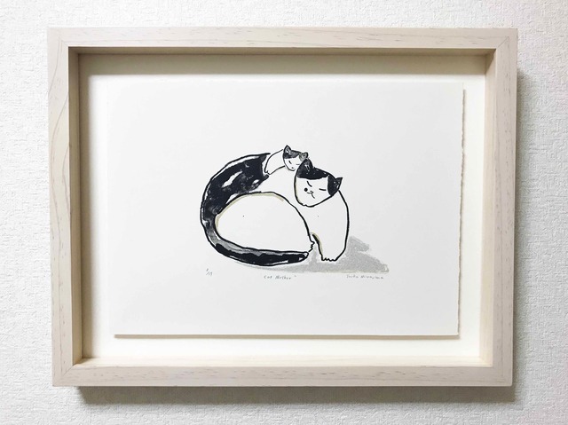 版画「Cat Mother」リトグラフ/額付